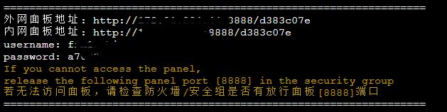 复制外网面板地址,在打开的页面中,用户名输入username后面的内容,密码输入password后面的内容