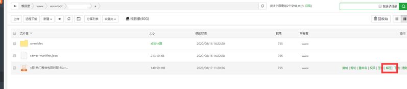 在新建的文件夹里上传刚刚导出的整合包,并解压;成功后如下图
